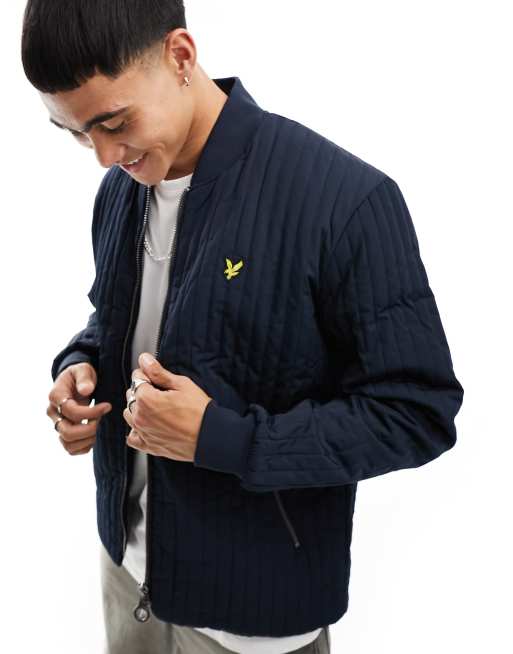 Lyle & Scott – Pikowana granatowa kurtka z podszewką z kożuszka i z logo