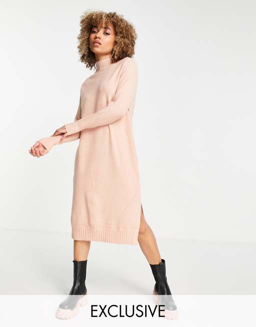 M Lounge – Pastelowa dzianinowa sukienka midi z golfem i prążkowanym dołem
