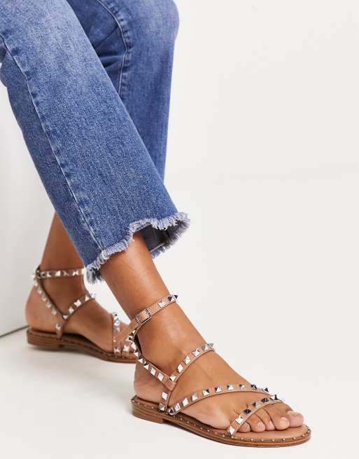 Madden Girl – Flight-S – Jasnobrązowe sandały z paskami zdobionymi ćwiekami