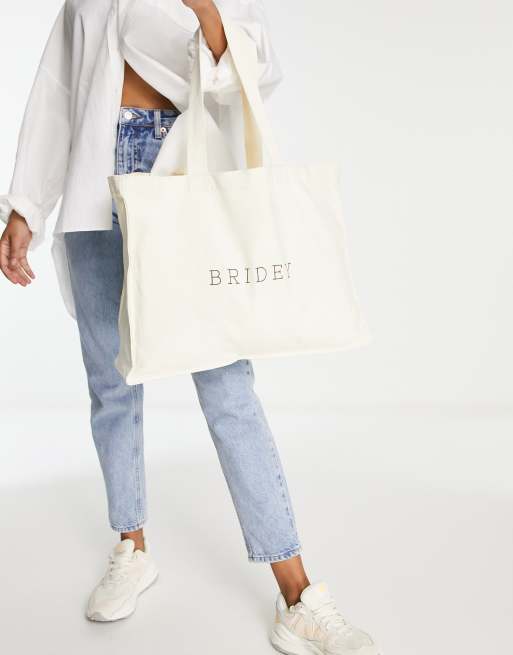 Madein. – Biało-różowa płócienna torba typu tote z napisem