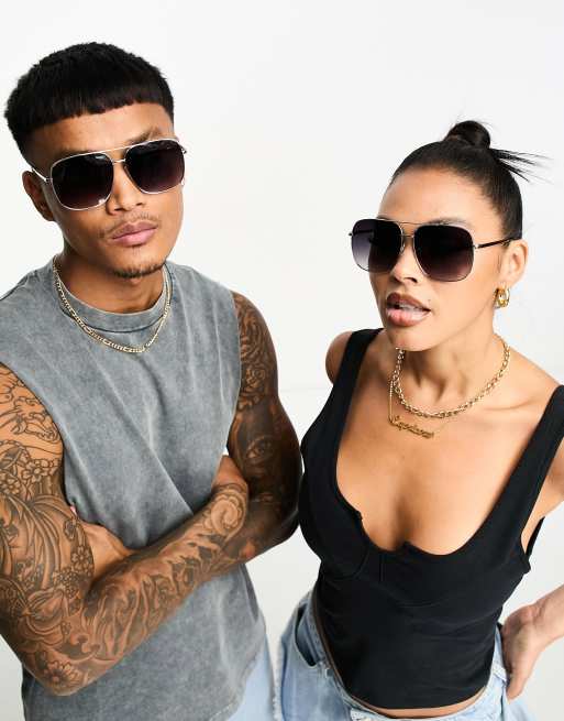 Madein. – Srebrne kwadratowe okulary przeciwsłoneczne aviator z przydymionymi szkłami