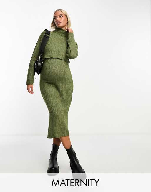 Mamalcious Maternity – Dwuwarstwowa dzianinowa sukienka midi w kolorze khaki