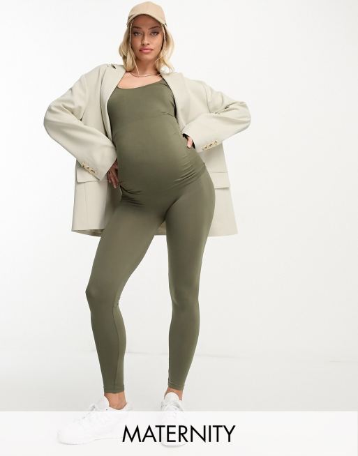 Mamalicious Maternity – Bezszwowe legginsy w kolorze zielonego khaki, część zestawu