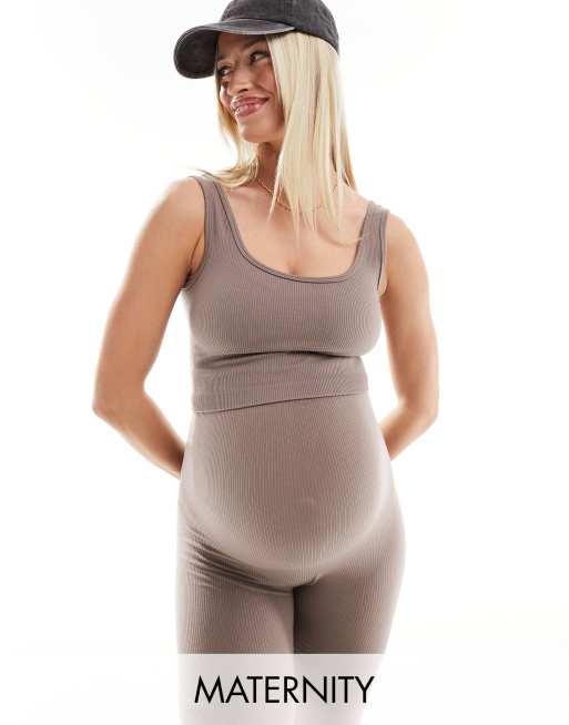 Mamalicious Maternity – Bezszwowy prążkowany krótki top w brązowoszarym kolorze, część zestawu