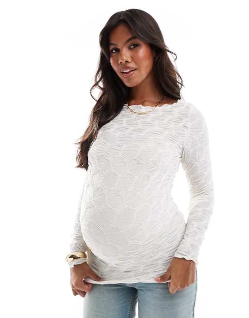 Mamalicious Maternity – Biały dżersejowy top z długim rękawem w fakturowany wzór 3D