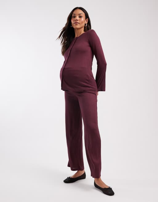 Mamalicious Maternity – Bordowe miękkie spodnie z dżerseju z prostymi nogawkami, część zestawu