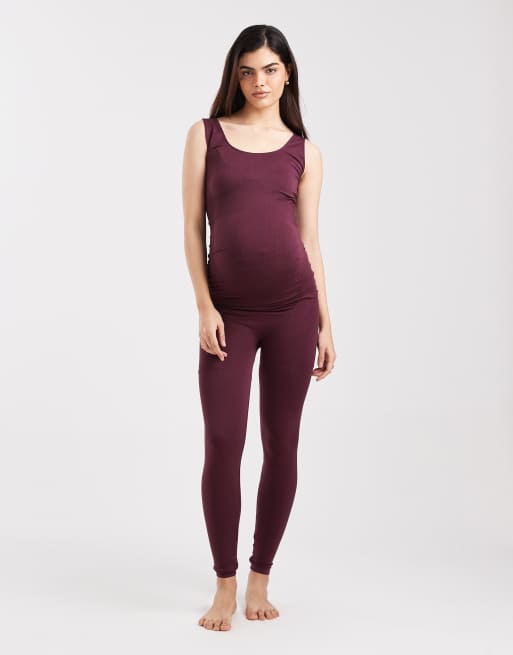 Mamalicious Maternity – Bordowy zestaw: bezszwowy podkoszulek i legginsy
