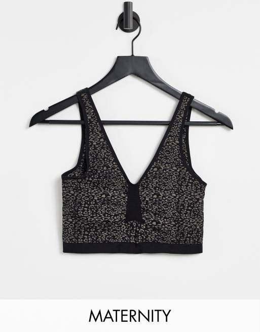Mamalicious Maternity – Czarny biustonosz sportowy z funkcją karmienia i wzorem w panterkę – MULTI