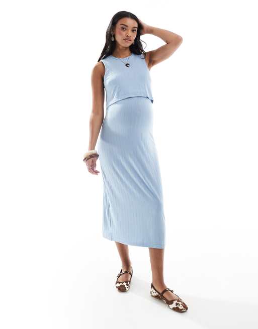 Mamalicious Maternity – Jasnoniebieska prążkowana dwufunkcyjna sukienka midi z funkcją karmienia