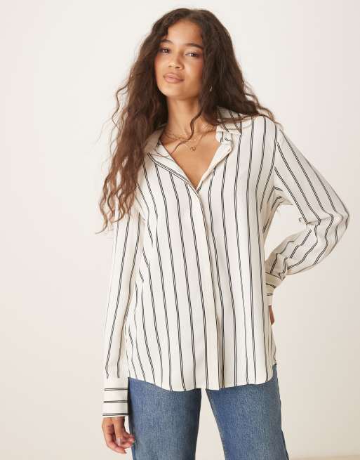 Mango – Beżowo-czarna koszula o luźnym kroju w paski