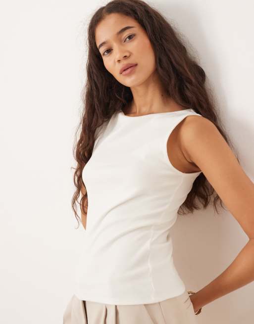 Mango – Bezowy top bez rękawów z dekoltem w łódkę
