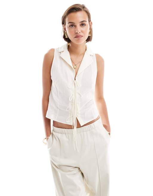 Mango – Biała bluzka bez rękawów wiązana z przodu