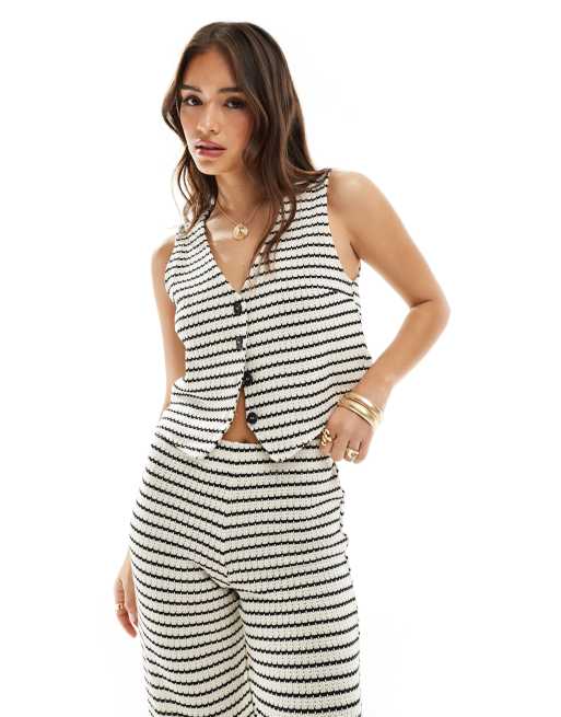 Mango – Biała szydełkowana kamizelka w paski, część zestawu