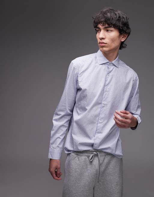 Mango – Biało-niebieska koszula z bawełny egipskiej w paski