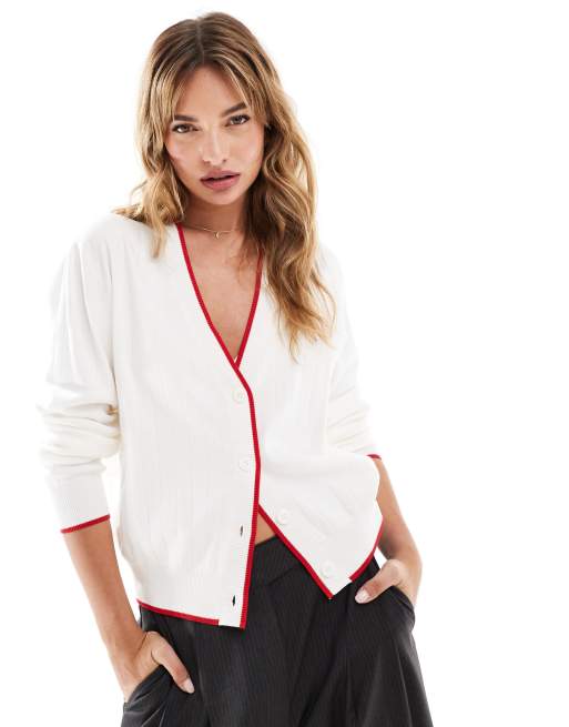 Mango – Biały kardigan z czerwoną kontrastową lamówką