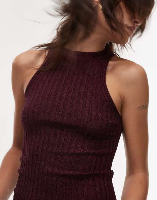 Mango – Bordowy błyszczący top dzianinowy bez rękawów