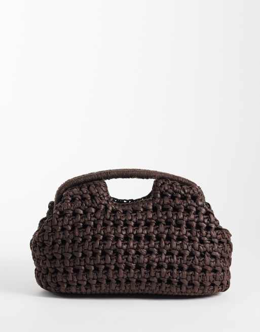 Mango – Brązowa duża pleciona kopertówka