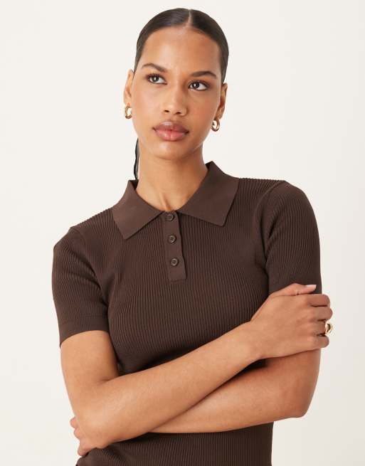 Mango – Brązowa dzianinowa koszulka polo z krótkimi rękawami