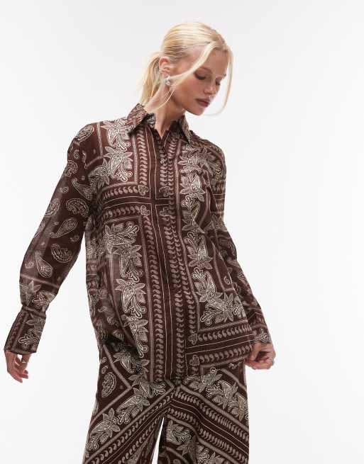 Mango – Brązowa koszula w bandanowy wzór, część zestawu