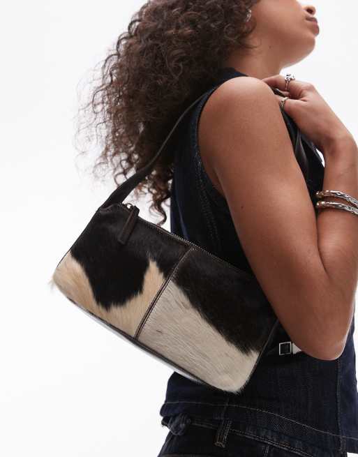 Mango – Brązowa torebka na ramię z imitacji skóry we wzór w krowie łaty