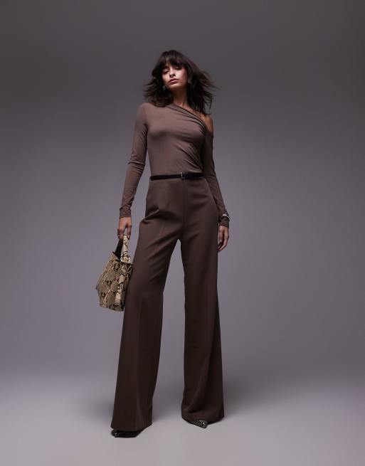 Mango – Brązowy asymetryczny kombinezon z długim rękawem