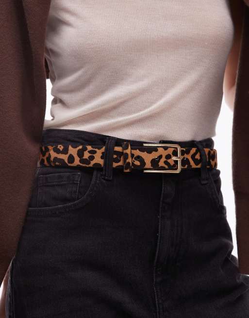 Mango – Brązowy skórzany pasek w cętki