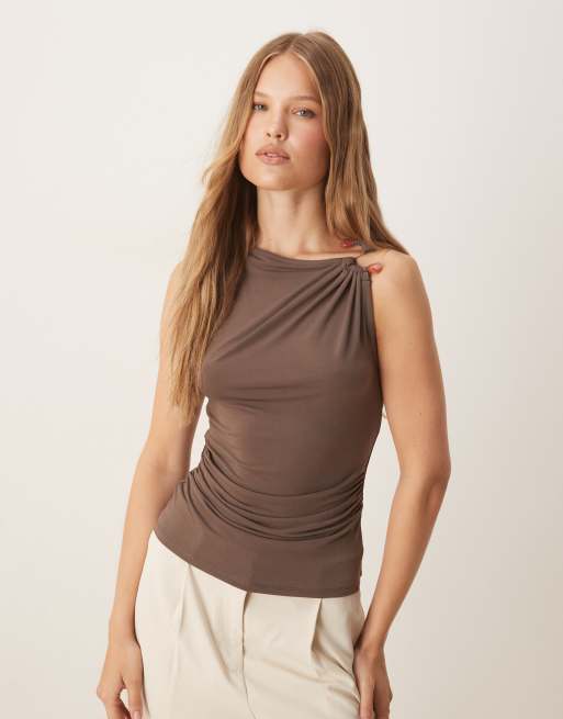 Mango – Brązowy top bez rękawów z metalową ozdobą na ramieniu