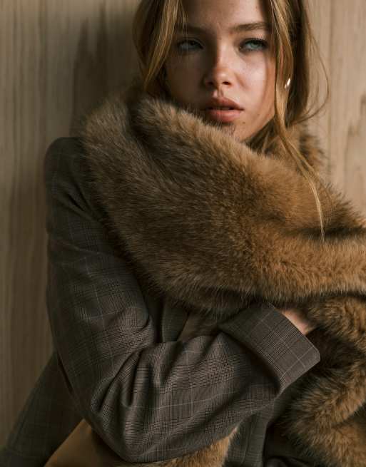 Mango – Capsule – Brązowy szalik ze sztucznego futra