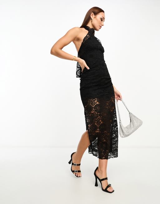 Mango – Capsule – Czarna koronkowa sukienka z zabudowanym dekoltem