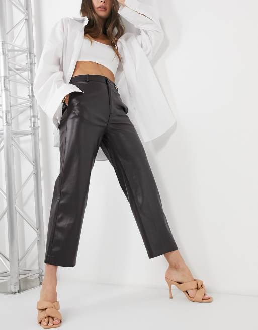 Mango – Ciemnobrązowe proste spodnie z imitacji skóry