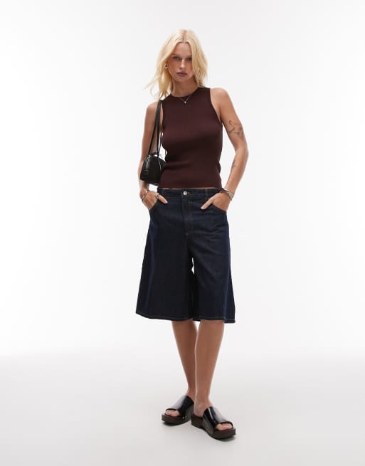Mango – Ciemnoniebieskie szorty bermudy jeansowe