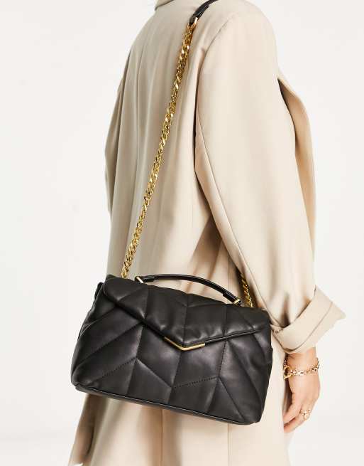Mango – Czarna pikowana torebka na ramie z łańcuszkiem