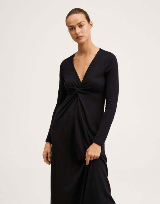 Mango – Czarna sukienka midi ze skręconym przodem