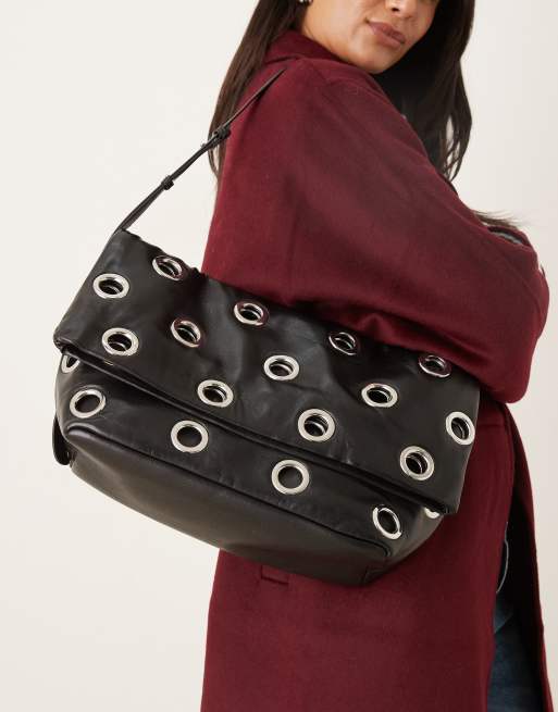 Mango – Czarna torebka na ramię z oczkami