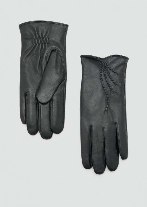 Mango – Czarne skórzane rękawiczki z wyściełane sztucznym futrem