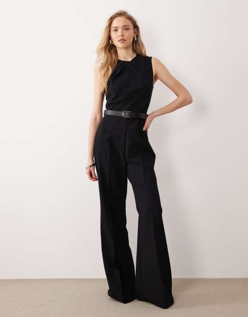 Mango – Czarny kombinezon bez rękawów z zabudowanym dekoltem i paskiem