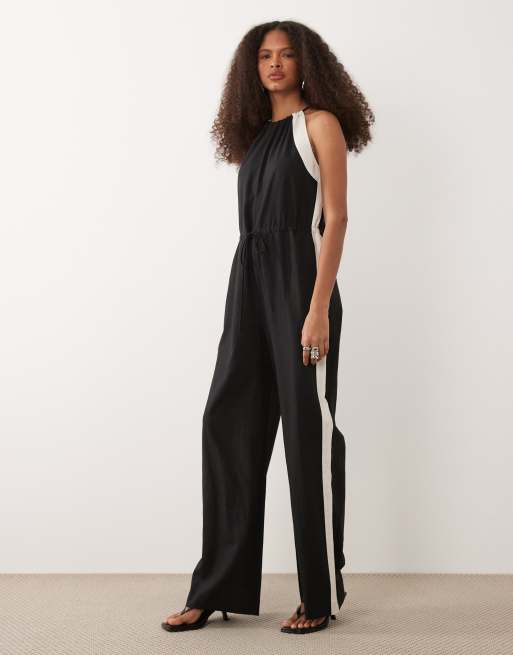 Mango – Czarny kombinezon z domieszką lnu z lampasami