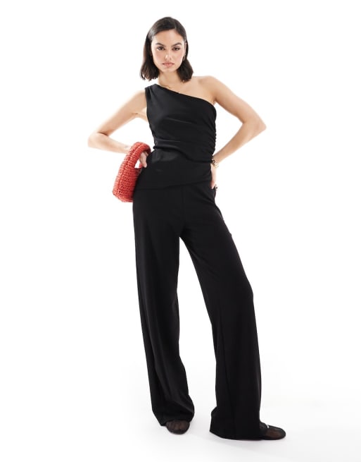 Mango – Czarny zestaw: top na jedno ramię i spodnie z prostymi nogawkami