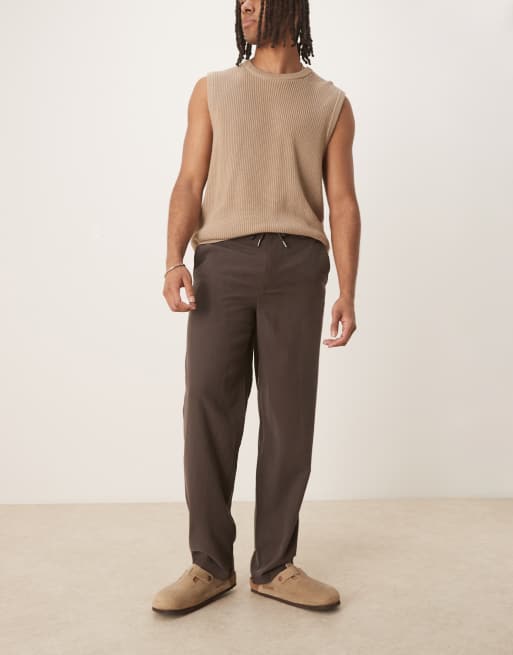 Mango – Czekoladowe spodnie z wiązaniem w talii o wyglądzie lnu