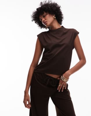 Mango – Czekoladowy T-shirt z prostym dekoltem i krótkimi rękawkami z poliamidu, część zestawu