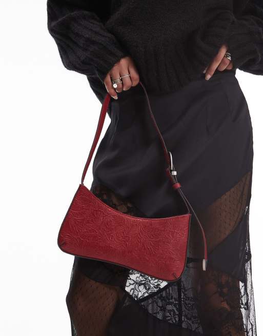 Mango – Czerwona torebka na ramię ze zdobieniem w stylu kowbojskim