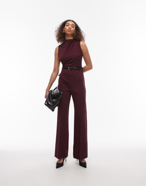 Mango – Czerwony kombinezon z golfem i paskiem