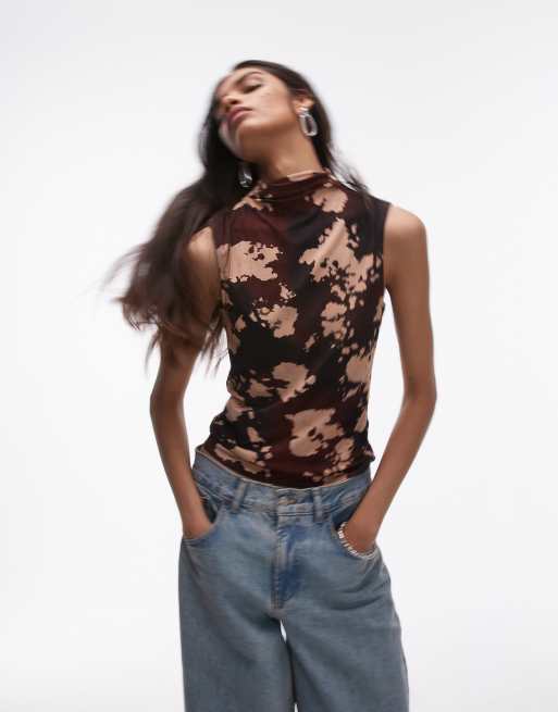 Mango – Czerwony top siateczkowy bez rękawów w mieszany wzór