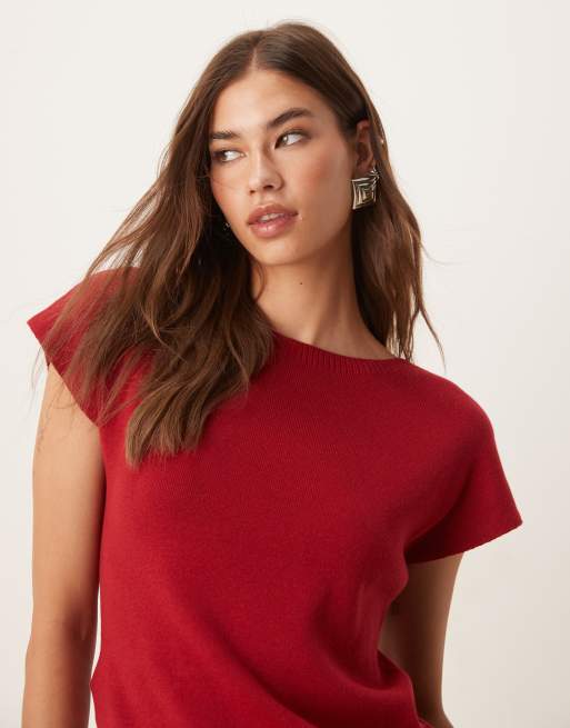 Mango – Czerwony top z krótkimi rękawkami z bawełnianej dzianiny
