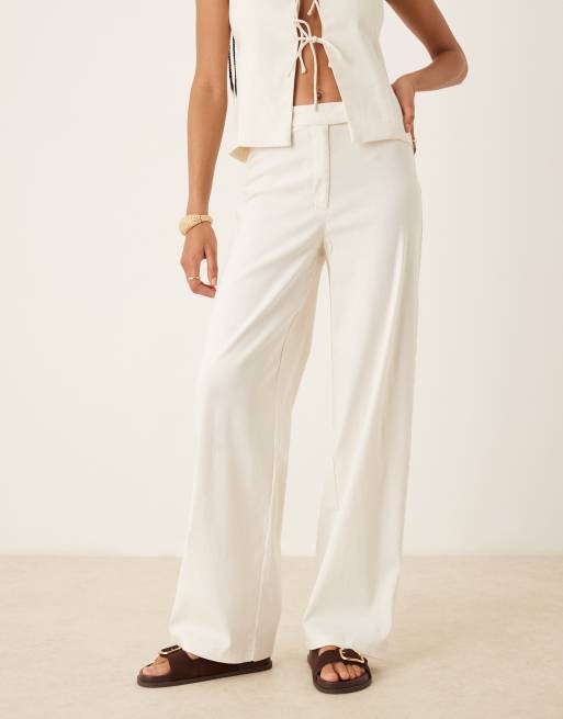 Mango – Dopasowane białe spodnie z mieszanki,lnianej, część zestawu