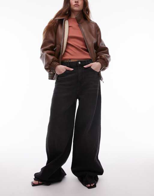 Mango – Elise – Czarne długie jeansy z szerokimi nogawkami