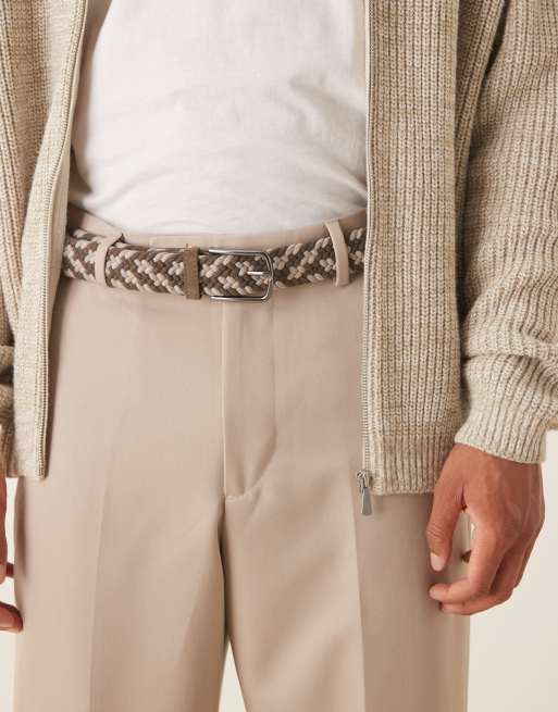 Mango – Fakturowany brązowy pasek z mieszanki bawełny