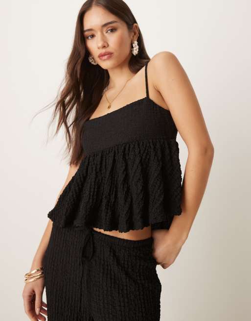 Mango – Fakturowany czerwony top na ramiączkach z odkrytymi plecami i baskinką, część zestawu