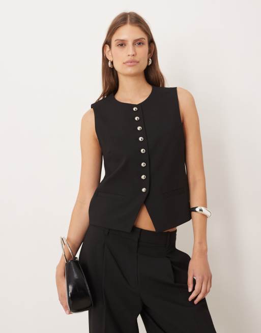Mango – Gabo – Dopasowany czarny podkoszulek z zapięciem na guziki, część zestawu