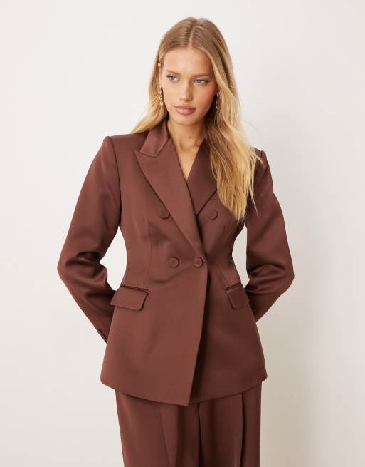 Mango – Gilda – Brązowa, satynowa marynarka o dopasowanym kroju, część zestawu